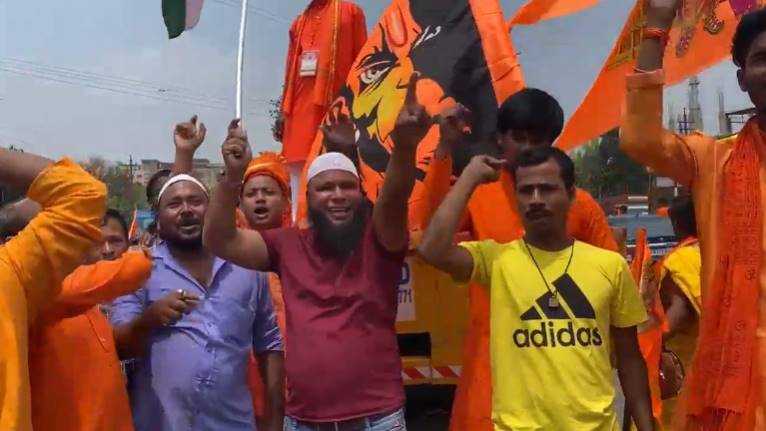 রামনবমী উপলক্ষে হিন্দু সংগঠনের সদস্যেরা শোভাযাত্রা বের করে। আর সেই শোভাযাত্রায় হিন্দুদের পাশাপাশি সামিল হন এলাকার মুসলিমদের একাংশ। একে অপরের পাশে থেকে ভারত মাতা কি জয়, বন্দেমাতারম স্লোগান দিতে থাকেন। একজন বিজেপি সমর্থক জানান, এরাই রাষ্ট্রবাদি মুসলিম। যারা ঐক্যের কথা বলে। ওই মুসলিম ব্যক্তি জানান, তাঁদের এলাকায় মুসলিমদের কোনও অনুষ্ঠান এগিয়ে আসেন হিন্দু ভাইয়েরা। সহযোগিতার হাত বাড়িয়ে দেন এবং পাশে থাকেন। তাই হিন্দু ভাইদের রামনবমী অনুষ্ঠানে তারাও সৌহাদ্রের হাত বাড়িয়ে দিয়েছেন। বর্তমান অবস্থায় দাঁড়িয়ে রামনবমীতে এমন চিত্র সচরাচর দেখা যায় না বললেই চলে।