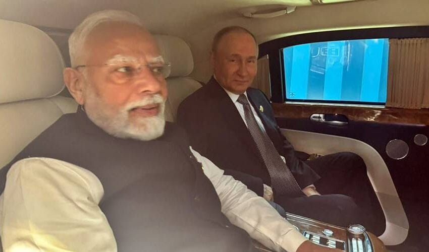 চিনের তিয়ানজিন শহরে SCO সম্মেলনের প্রাক্কালে নজিরবিহীন দৃশ্য—একই গাড়িতে সফর করলেন ভারতের প্রধানমন্ত্রী নরেন্দ্র মোদী ও রাশিয়ার প্রেসিডেন্ট ভ্লাদিমির পুতিন।