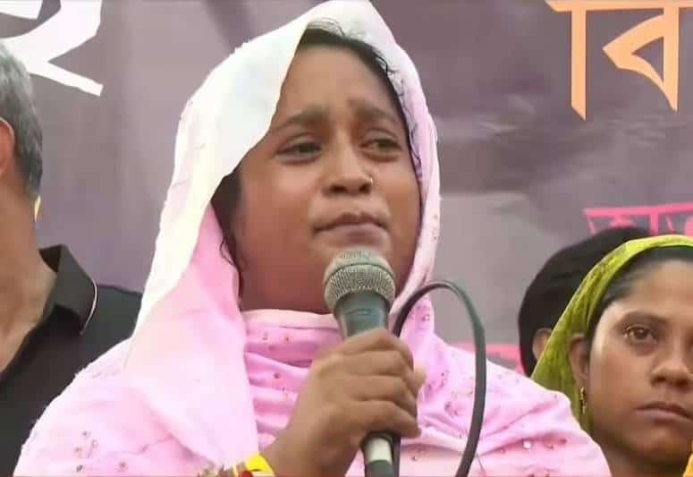 হাজরার প্রতিবাদ মঞ্চে যোগ দিয়ে মুখ্যমন্ত্রী মমতার বিরুদ্ধে বিস্ফোরক মন্তব্য করলেন নদিয়ার কালীগঞ্জে নিহত শিশু তামান্নার মা সাবিনা ইয়াসমিন কলকাতা: