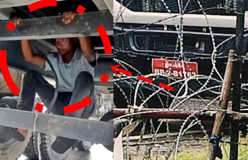 শিলিগুড়িঃ বোল্ডার বোঝাই গাড়ির নিচে লুকিয়ে অনুপ্রবেশের চেষ্টা, বিএসএফের হাতে ধৃত বাংলাদেশি যুবক। শিলিগুড়ি সংলগ্ন ফুলবাড়ি সীমান্তে বিএসএফের হাতে ধরা