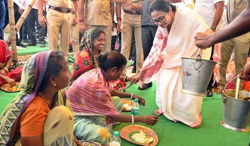 আরামবাগঃ বন্যা পরিস্থিতি খতিয়ে দেখতে মঙ্গলবার আরামবাগে পৌঁছান মুখ্যমন্ত্রী মমতা বন্দ্যোপাধ্যায়। গোঘাটের একটি ত্রাণ শিবিরে সারি দিয়ে বসে থাকা বন্যাদুর্গতদের