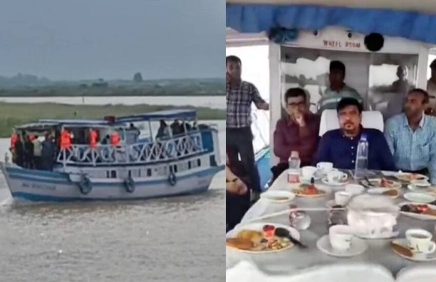 প্লেটে সাজানো রয়েছে নানা রকম খাবার! “এ যেন ভাঙন পরিদর্শনের নামে নদীর মাঝেই পিকনিক!” নেতা-মন্ত্রীদের ভাইরাল ভিডিও ঘিরে প্রশ্ন বিরোধীদের।