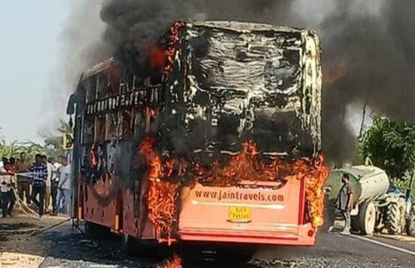 রাজস্থানের জয়সলমের-জোধপুর হাইওয়েতে মঙ্গলবার বিকেলে ঘটে গেল এক মর্মান্তিক দুর্ঘটনা। ৫৭ জন যাত্রী নিয়ে জয়সলমের থেকে ছেড়ে যাওয়া একটি বেসরকারি