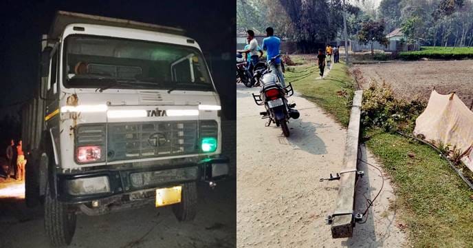 গভীর রাতে গ্রামের রাস্তায় বালি বোঝাই ডাম্পার ঢোকাতেই বিপত্তি। গাড়ির ধাক্কায় পরপর ৩টি বিদ্যুতের খুঁটি ভেঙ্গে পড়ল রাস্তায়। কার্যত বিদ্যুৎহীন