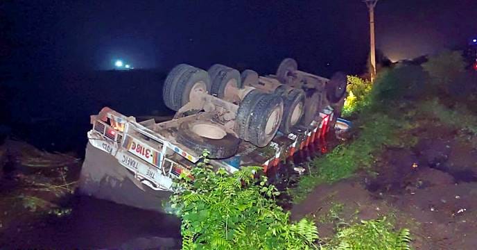 নিয়ন্ত্রন হারিয়ে উল্টে গেল চাল বোঝাই লরি