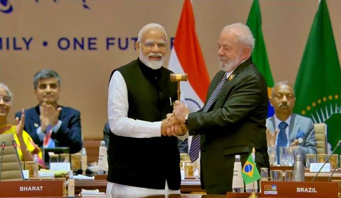 G20summit: দিল্লিতে শেষ হল জি২০ বৈঠক। পরবর্তী বিশ্ব সম্মেলনের দায়িত্ব পেলেন ব্রাজিলের প্রেসিডেন্ট লুলা ডি সিলভা। রবিবার সভা শেষে প্রেসিডেন্ট লুলার হাতে জি২০-র সভাপতিত্বের হাতুড়ি তুলে দিলেন প্রধানমন্ত্রী মোদী।