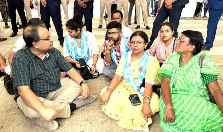 আগরতলা: ত্রিপুরাতে ঢুকতে গিয়েই বাধা পেলেন কুনাল ঘোষ এবং সায়নী ঘোষরা। প্রতিবাদে বিমানবন্দরে ধর্না দিয়ে বসে পড়লেন তাঁরা।