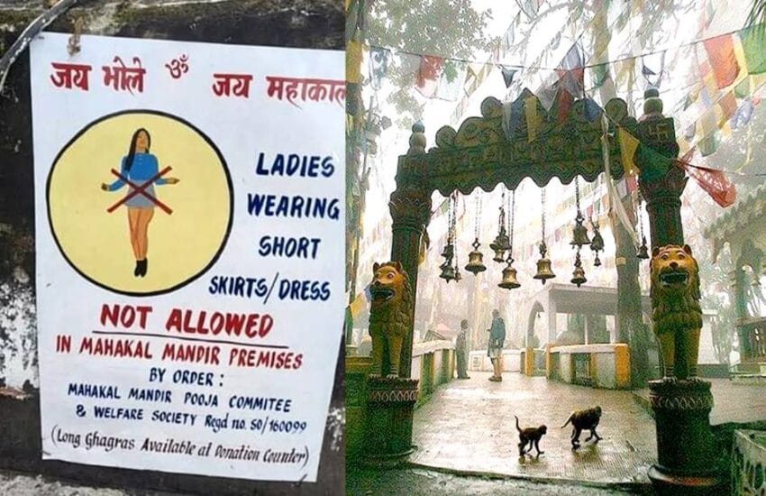 দার্জিলিং: দার্জিলিয়ের মহাকাল মন্দিরে মেয়েদের জন্য জারি হল নতুন পোশাকবিধি। সিদ্ধান্ত অনুযায়ী, ছোট স্কার্ট বা ছোট পোশাক পরে মহিলাদের মন্দিরে প্রবেশ করতে দেওয়া হবে না। সম্প্রতি এই নির্দেশিকা মন্দির চত্বরে পোস্টার আকারে টাঙানো হয়েছে, যা ইতিমধ্যেই সোশ্যাল মিডিয়ায় ভাইরাল।