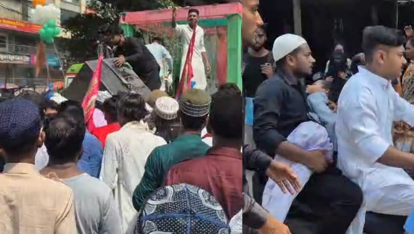 নবী দিবসের শোভাযাত্রার মাঝে হঠাৎ ভেঙে পড়ে সাউন্ড বক্স, গাদাগাদি ভিড়ে চাপা পড়েন অনেকেই। শিলিগুড়ির ঝংকার মোড়ের ঘটনা।