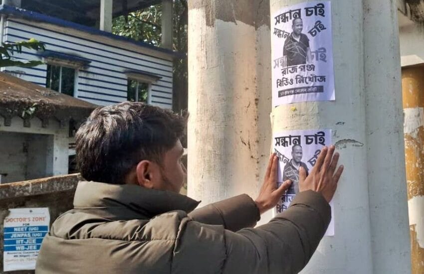 শনিবার রাজগঞ্জ বিডিও অফিসের সামনে নাটকীয়ভাবে লিফলেট বিলি করল স্থানীয় এসএফআই সদস্যরা। লিফলেটে লেখা ছিল—“রাজগঞ্জের বিডিও নিখোঁজ, সন্ধান চাই।” পথ চলতি সাধারণ মানুষকেও টোটো ও বাইক থামিয়ে একই দাবি জানাতে দেখা যায়। এরপর অফিসের গেটের দু’পাশে সেই লিফলেট সাঁটানো হয়।