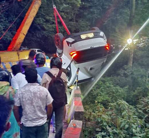 তিনজনই কোনও মতে গাড়ি থেকে বেরিয়ে আসেন, সামান্য আহত হলেও প্রাণে বেঁচে যান। পরে পুলিশ এসে ক্রেনের সাহায্যে গাড়িটি উদ্ধার করে।