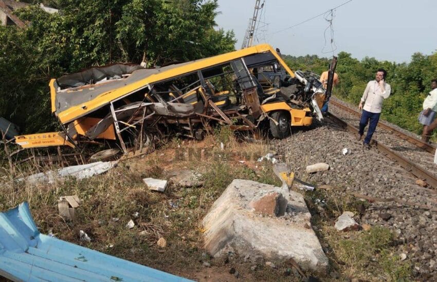 তামিলনাড়ু: রেলগেট বন্ধ না করে ঘুমিয়ে পড়লেন গেটকিপার, খোলা লেভেল ক্রসিং পার করতে গিয়ে ট্রেনের ধাক্কায় দুমড়ে মুচড়ে গেল স্কুল বাস! তিন শিশু শিক্ষার্থীর মর্মান্তিক পরিণতি। আহত আরও কয়েকজন।